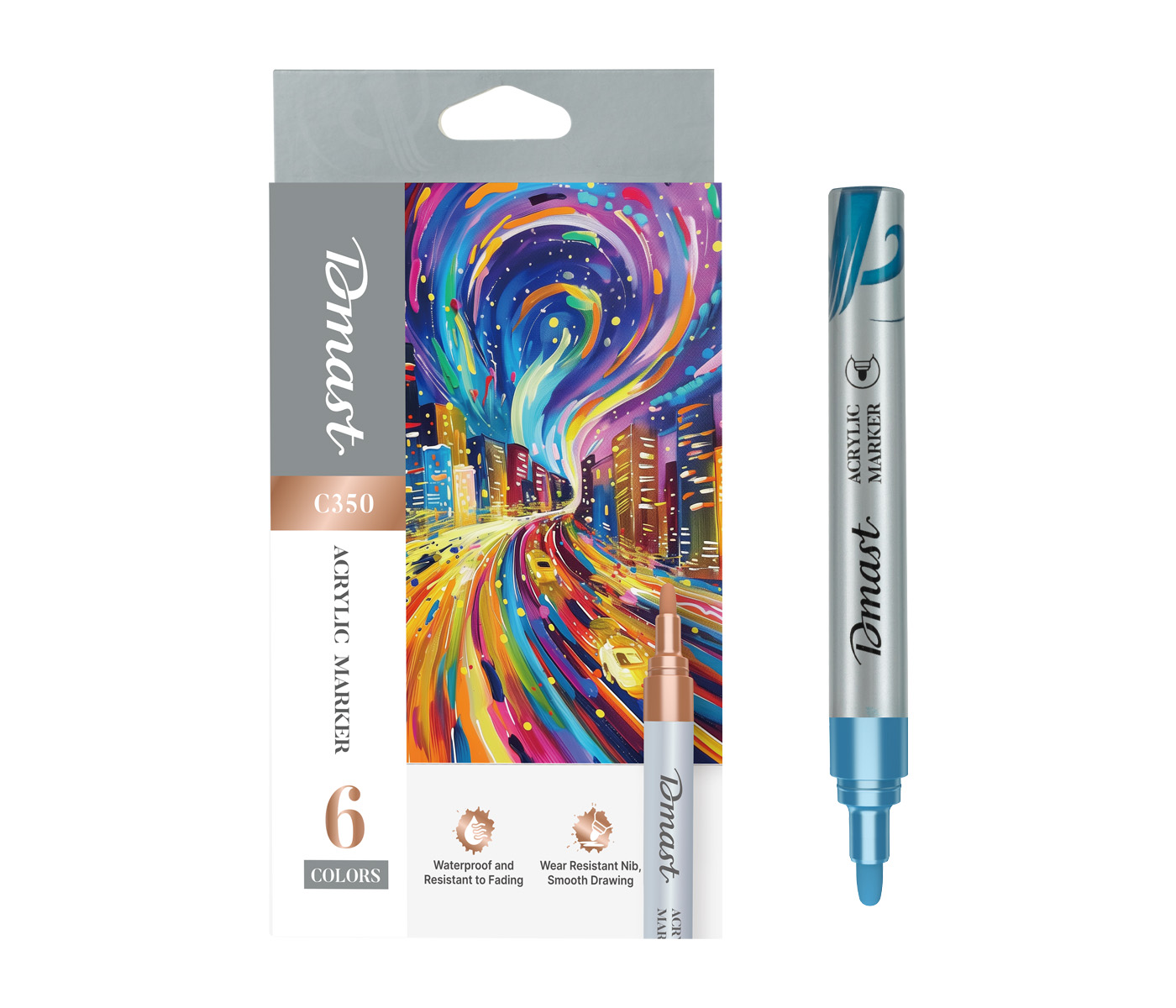 Popisovač akrylový Dmast metal sada 6 barev DELI EC350